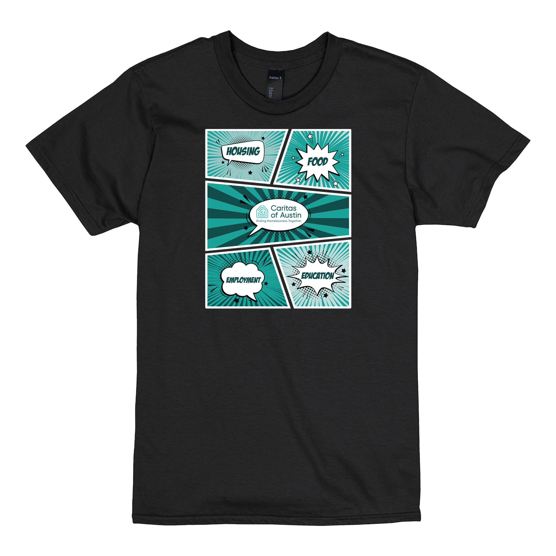 Get ready to wear your support for a great cause with our Caritas of Austin Power Panels Tee! Made from 100% ring spun cotton, this tee is not only stylish but also comfortable. Show off your love for Caritas of Austin and make a difference with every purchase.